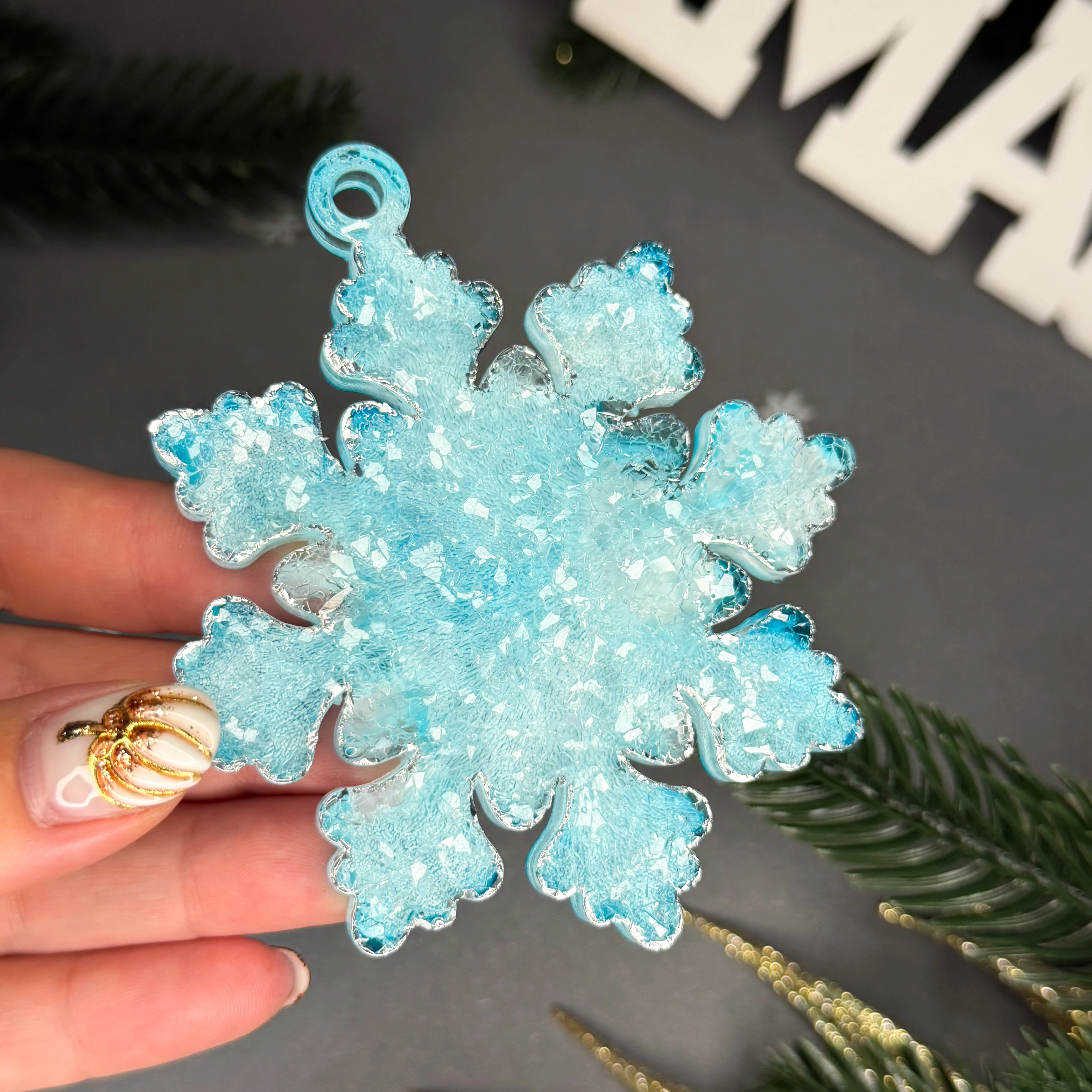 Varázsold ünnepivé a karácsonyt a különleges, kézzel készült hópihe druzy karácsonyfadísszel!