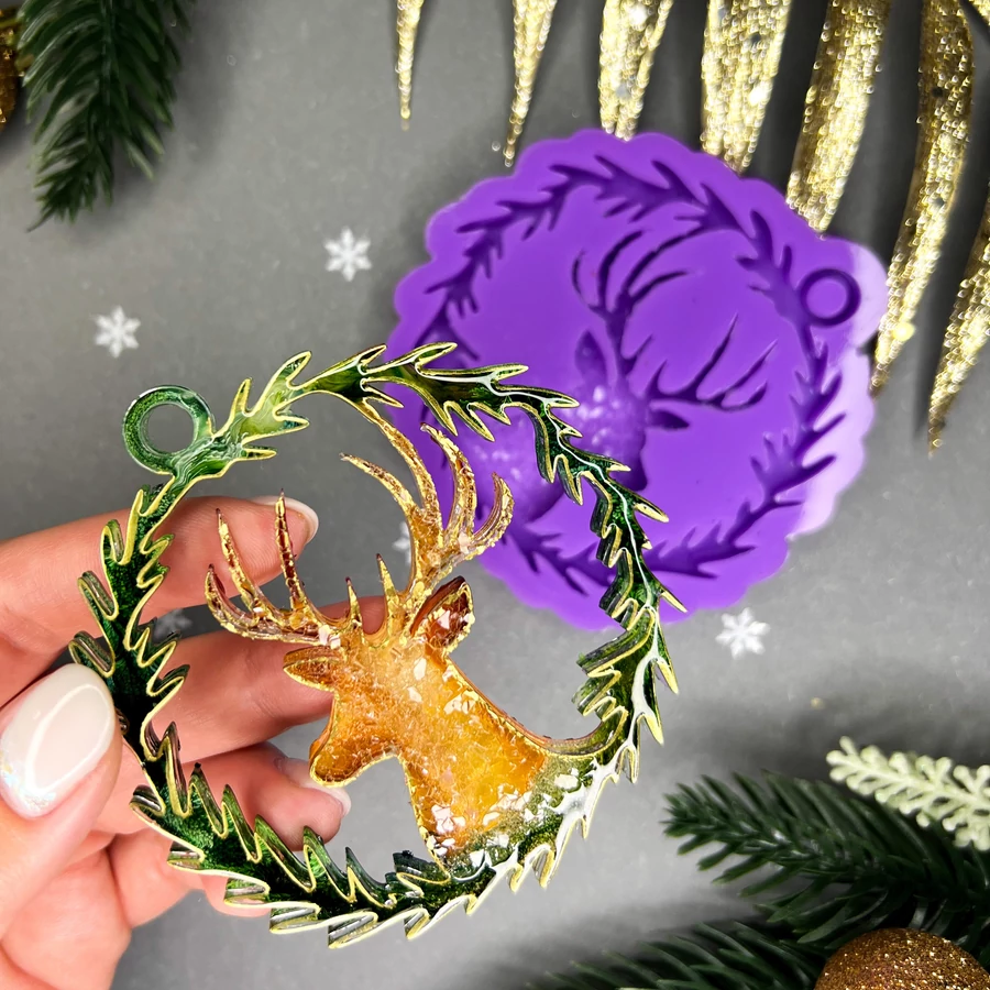 Fedezd fel a különleges, saját fejlesztésű szarvas szilikonformát fenyőággal, melyben a szarvas druzy felületet, a fenyőágak pedig sima mintázatot kaptak. Ez a kombináció elegáns és ünnepi megjelenést kölcsönöz az elkészült díszeknek.